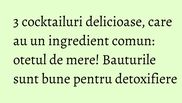Stiati ca exista bauturi alcoolice pe care le poti consuma si care te pot ajuta si pentru detoxifierea organismului? Iata trei retete de cocktailuri alcoolice delicioase, care ajuta si organismul.
