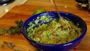 Ingrediente: Trei avocado, o ceapă medie, două roşii (tari, pentru a nu lăsa zeama în compoziţie), coriandru verde, zeamă de la o lămâie verde, 2 căţei de usturoi, sare, piper, un ardei iute. Renumitul bucătar Jamie Oliver a dat un pont foarte bun ce poate fi utilizat atunci când avocado nu este copt.