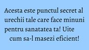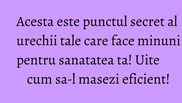 Foloseste un betisor de urechi din bumbac si maseaza usor acest punct. Respira profund. Apoi, asculta-ti corpul cu atentie. Continua sa respiri profund. Cand inspiri, priveste spre stanga si cand expiri, priveste spre deapta. In scurt timp, vei constata relaxarea corpului tau.
