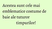 De-a lungul timpului, costumele de baie au suferit modificari drastice. Daca la inceput se purtau pentru a acoperi partile intime ale corpului si a pastra un anumit nivel de decenta, astazi costumele de baie sunt minuscule. Cu toate acestea cateva vor ramane in istorie!