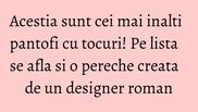 Tocurile inalte fac piciorul mult mai frumos si ofera tinutei eleganta. Unele perechi de pantofi sunt insa exagerate, cand vine vorba de inaltimea tocului, altele sunt adevarate opera de arta. Iata despre ce este vorba.