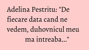 "Recunosc ca duhovnicul meu nu este un preafericit din acest punct de vedere. Atunci cand avem o intalnire pentru sfestanie sau la biserica, unde merg pentru ca asa este frumos si asa simt, deci de cate ori ne intalnim, ma intreaba: ‘ce tatuaje mai ai?’ Da, am un duhovnic foarte prietenos si chiar daca statutul dansului este unul aparte, avem o prietenie deschisa si ii pot povesti foarte multe. Ii pot cere sfaturl ori de cate ori am nevoie”, marturiseste Adelina Pestritu in cadrul unei emisiuni, scrie WOWBiz.ro.
