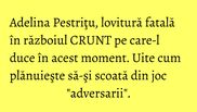 Adelina Pestriţu nu este o vedetă conflictuală, frumoasa brunetă evitând mereu scandalurile şi situaţiile tensionate. Protagonista noastră preferă diplomaţia, dar câteodată nedreptatea o ofensează atât de tare încât ia atitudine.