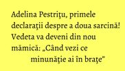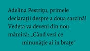 Întrebată dacă ar fi pregătită să devină mamă în viitorul apropiat, vedeta a dat un răspuns prompt şi neaşteptat. „Da! Cum sa nu?! Mi-am revenit acum, cu somodieta. Sunt perioade grele, dar nu imposibile. Când vezi ce minunăţie ai în braţe, se merită să treci peste absolut orice noapte nedormită, orice stare de agitaşie, de stres, de panica. Copiii sunt cel mai minunat lucru care ni se paote întâmpla în viaţă şi pentru care trăim şi chiar nu m-aş împiedica de astfel de probleme”, a mai spus Adelina Pestriţu.
