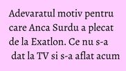 Anca Surdu, una din cele mai indragite concurente de la Exatlon, a fost nevoita sa se intoarca in Romania. Plecarea ei a fost neasteptata, aproape misterioasa.
