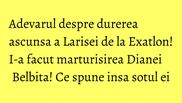 La scurt timp, Larisa i-a facut o marturisire Dianei Belbita: "Mi-a revenit tibia, abia se vindecase, iar acum a revenit", a spus Larisa. “Ti s-a invinetit”, i-a raspuns Belbita, uitandu-se la picior.