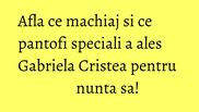 "Am ales sa ii fac un machiaj soft, pentru ca Gabriela este frumoasa si ii sta bine oricum s-ar aranja. Chiar si fara sa se fardeze! Insa, azi este o zi speciala si am mers pe ideea unei imagini naturale, cu nuante nude si pastelate, care sa se potriveasca la ambele tinute pe care le va avea. Daca va fi cazul unui retus, ii voi accentua un pic umbrele, dar sunt sigura ca nu va fi nevoie", a declarat Camelia Enciu pentru WOWbiz.ro