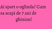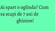 Si cum 7 ani de ghinion e totusi un pic cam mult, chiar si pentru cei care se autoflageleaza, s-au gasit diverse trucuri pentru a scapa de blestem. Fie atingi unul dintre cioburi de un mormant, fie le pisezi marunt pe toate. De asemenea, ar fi bine sa scoateti cioburile din casa, sa sapati o groapa si sa le ingropati bine de tot. Asa veti alunga lungul ghinion.