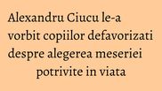 Designerul vestimentar Alexandru Ciucu a fost invitatul special al Centrului Comunitar Generatii, proiectul Fundatiei Principesa Margareta a Romaniei, pentru a le vorbi copiilor aflati in grija despre importanta alegerii meseriei potrivite in viata.
