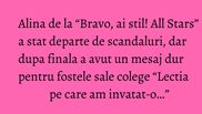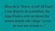 Chiar daca a incercat sa nu intre in sacndalurile provocate de colegele ei, Alina a marturisit dupa incheierea emisiunii ca este dezamagita si a avut un mesaj dur pentru concurente.
