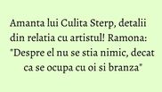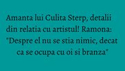 Carmen de la Salciua si Culita Sterp au decis sa-si spuna adio dupa o relatie de mai multi ani. Desi nu au vrut sa dezvaluie motivul despartirii, apar la lumina tot felul de amanunte incendiare. Ramona sustine ca s-a iubit cu artistul luni bune, chiar si dupa ce acesta s-a casatorit.