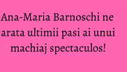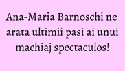 Frumoasa Ana-Maria Barnoschi nu a facut niciun curs de make-up, dar cu toate acestea rezultatele ei sunt demne de o profesionista. Tanara a acceptat sa ne primeasca in apartamentul ei unde are toate “instrumentele” necesare unui machiaj de efect si dupa ce ati vazut, in episoadele trecute, cum isi fardeaza ochii, dar si cat de repede isi aplica buclucasele gene false care le dau batai de cap tuturor reprezentantelor sexului frumos. In filmarea de astazi, protagonista noastra prezinta ultimii pasi ai unui machiaj care va va scoate din anonimat si bineinteles diferenta dintre “inainte” si “dupa”.