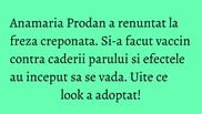 Pe scurt, Anamaria Prodan accepta sa isi faca vaccinul FDA contra caderii parului. Benefic si de mare ajutor pentru cei care intampina astfel de probleme, vaccinul opreste caderea si accelereaza procesul regenerarii firului de par. In cazul Aneimaria Prodan efectele sunt vizibile la patru saptamani de cand si-a injectat serul la clinica din Turcia, motiv pentru care impresara a renuntat la coafura creponata si a adoptat un look nou.