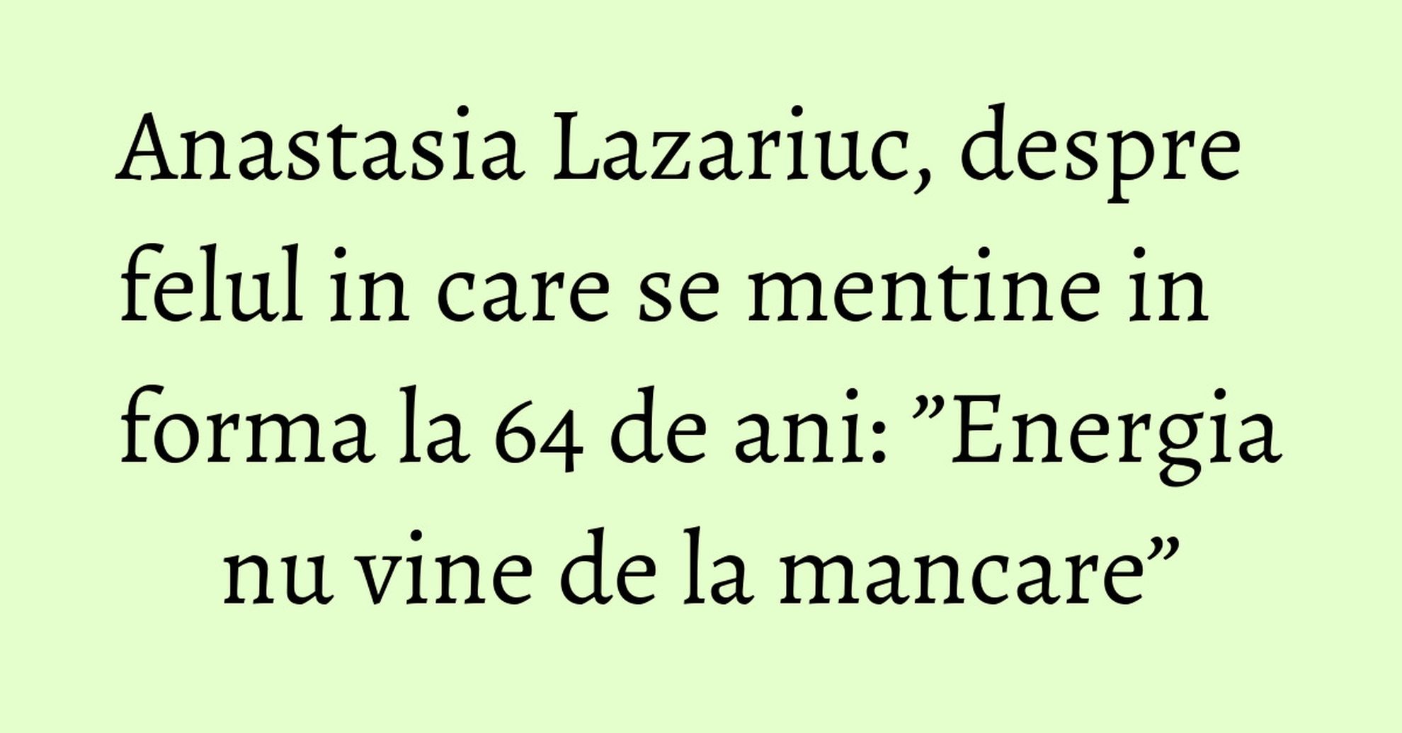 Îndrăgita cântăreaţă Anastasia Lazariuc are un trup de invidiat chiar şi la vârsta de 64 de ani. Despre felul în care ruşeşte să se menţină în formă, artista vorbeşte duminică, în cadrul emisiunii ”Refresh by Oana Turcu”.
