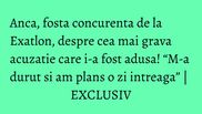 Anca, fosta concurenta de la Exatlon, a fost una dintre cele mai controversate sportive din competitie. S-a certat cu mai toata lumea si a fost acuzata de multe. Insa, Anca ne-a povestit ca acuzatia adusa de Faimosi, ca ar fi accidentat-o intentionat pe Anda Adam a durut-o cel mai tare.
