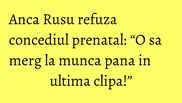 Desi a inceput numaratoarea inversa si luna viitoare va aduce pe lume primul sau copil, Anca Rusu refuza sa intre in concediu prenatal si doreste sa munceasca pana in ultima clipa.
