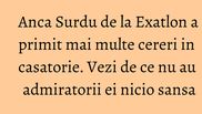 Acesta nu este insa un caz izolat, mai multi domni exprimandu-si dorinta de a o avea alaturi pe Anca. Admiratorii sportivei nu au din pacate nicio sansa la inima concurentei de la Exatlon, tanara avand o relatie solida cu artistul Silviu Pasca.