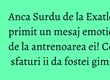 Marcela Fumea, antrenoarea Ancai Surdu, cea care a fost alaturi de sportiva inca de cand aceasta era la junioare, este extrem de incantata de evolutia ei la Exatlon. Marcela Fumea este antrenoarea lotului national de gimnastica aerobica al Romaniei si alaturi de sportivele ei o sprijina pe Anca Surdu.