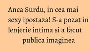 Pe pagina ei de socializare, Anca Surdu posteaza frecvent imagini care pun pe jar barbatii, dar una din ele chiar i-a surprins pe toti. In fotografia postata in urma cu doi ani, Anca apare intinsa pe pat, fiind imbracata doar intr-o lenjerie intima sexy.