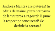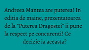 Cum raspunde Rafaela acuzatiilor si ce decizii va lua Andreea Mantea in privinta concurentilor veti putea afla in editia de maine a show-ului “Puterea Dragostei”, difuzata la ora 10:00, la Kanal D.