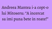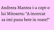 “Andreea Mantea este veterana in aceasta emisiune, stie cum stau lucrurile, asa ca de fiecare data ea incearca sa mi-o ia inainte si sa stranga cat mai multe daruri de la apropiatii mirilor. A incercat sa imi puna bete in roate…Tin minte ca la una dintre nuntile la care am filmat pentru <Se striga darul> a trebuit sa urc doua ore pe un munte pentru a ajunge la un mestesugar de opinci.