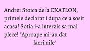 "Suntem foarte fericiti, abia asteptam sa ajungem acasa sa ne povesteasca. I-am facut tot ce ne-a comandat", a spus mama lui Andrei Stoica.