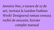 Antonia Nae este un nume necunoscut pentru cei mai multi dintre noi. Tanara designer face insa senzatie la Londra, unde a participat la numeroase evenimente, iar in februarie isi va prezenta colectia la London Fashion Week.