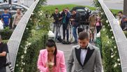 Puși la patru ace, cei doi soți au ajuns la slujba religioasă de la Biserica Mănăstirii Cașin, purtând haine în ton cu evenimentul. Corina, îmbrăcată în roz, cu decolteul la înaintare, a făcut senzație cu apariția ei, spre mândria lui Honorius Prigoană și, deși au preferat să evite presa, cei doi au zâmbit larg aparatelor de fotografiat.
