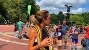 Fără să-i fie teamă, Ioana şi-a pus un piton galben pe după gât şi a făcut câţiva paşi prin parc, fiind privită cu uimire de cei aflaţi în preajma ei.
