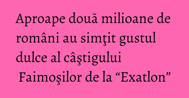 In ceea ce priveste segmentele de public All Urban si Comercial, statia isi mentine locul in topuri, editia de aseara “Exatlon” pozitionand-o pe locul doi.