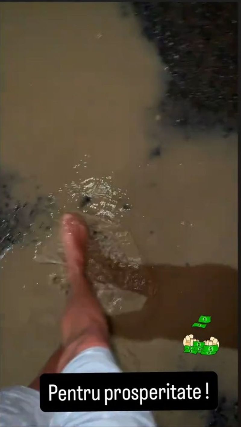 Armin Nicoară i-a urmat sfatul așa că, îmbrăcat doar într-o geacă și o pereche de pantaloni scurți, acesta a stat ore întregi cu picioarele în bălțile formate și a dezvăluit și ce s-a întâmplat în viața sa de curând pentru că a urmat sfaturile bunicii sale:
