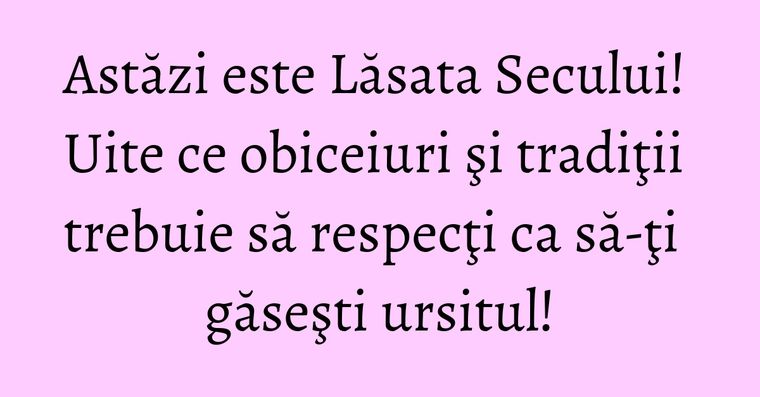 Obiceiurile de Lasata Secului spune ca fetele mari care nu si-au gasit inca ursitului procedeaza la "batutul pernelor", ceea ce se crede ca o astfel de "corectie" imblânzeste soarte, care le va aduce in prag petitori.