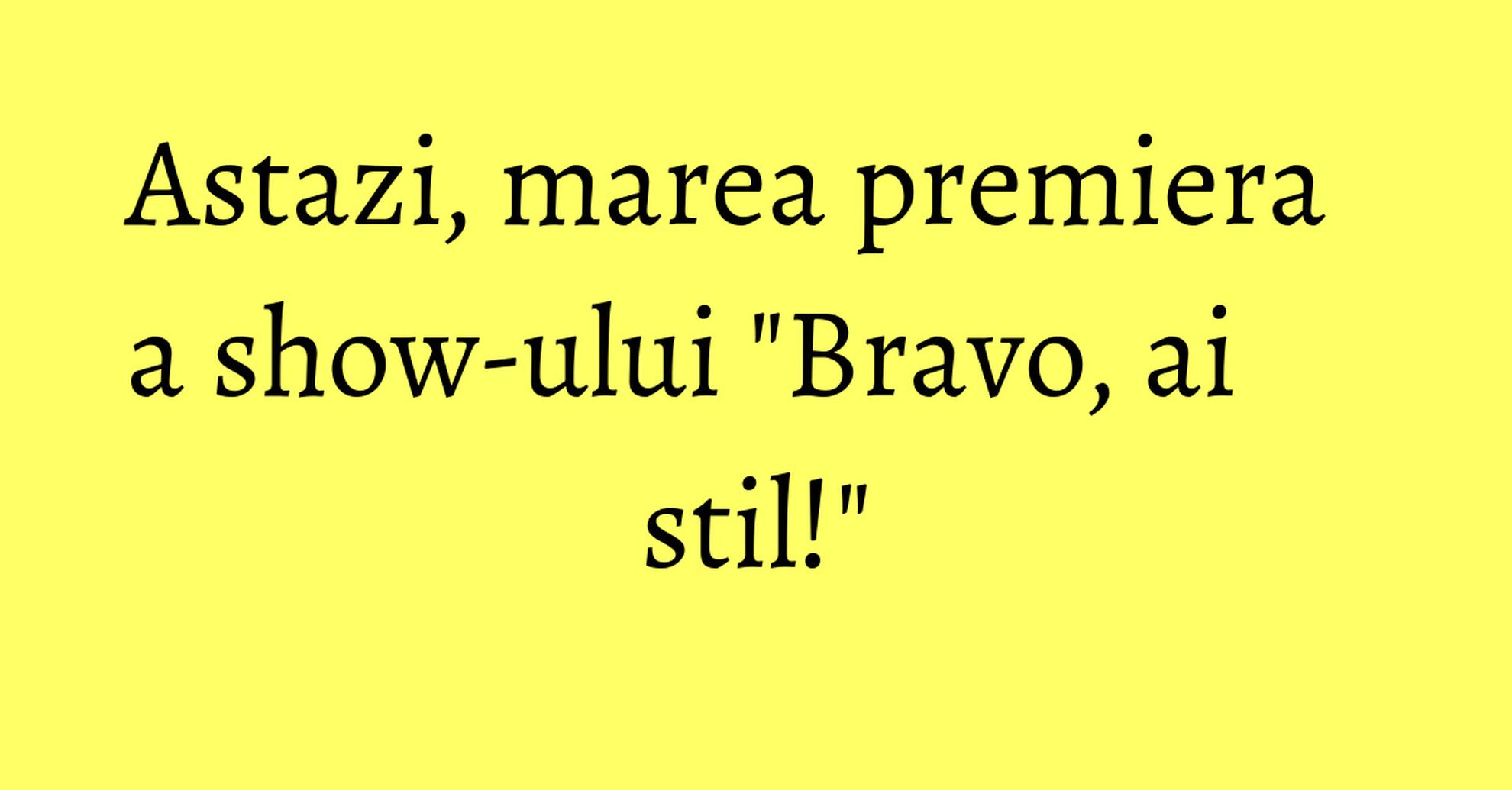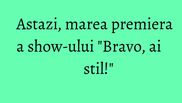 Nu ratati astazi, de la ora 17:00, debutul emisiunii "Bravo, ai stil!", la Kanal D! Emisiunea va fi difuzata de luni pana vineri, de la ora 17:00, si duminica, incepand cu ora 20:00.