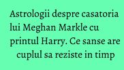 Compatibilitatea astrologica dintre Meghan Markle si printul Harry nu este una foarte buna, insa astrogramele celor doi miri arata ca se completeaza reciproc. Iata ce spun astrologii!