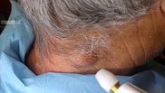 Odată ce a ajuns în cabinetul doctorului Guru, bărbatul e aşezat pe un scaun. În imaginile filmate se vede cum un laser pătrunde în mijlocul gâlmei, iar apoi, prin presare, din ea iese un conţinut extrem de scârbos.