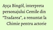 Inainte de a deveni actrita, Ayça Bingöl, interpreta personajului Cemile din serialului “Tradarea”, difuzat de luni pana miercuri, de la orele 20.00 la Kanal D, a fost studenta la Chimie.