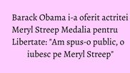 "A cantat din repertoriul ABBA si asta nu e deloc usor. A invatat sa cante la vioara, a purtat haine de calugarita, a infruntat un leu si stapaneste toate accentele din lume", a adaugat presedintele american, subliniind talentul actritei recompensate cu trei premii Oscar de "a imbraca personajele sale".