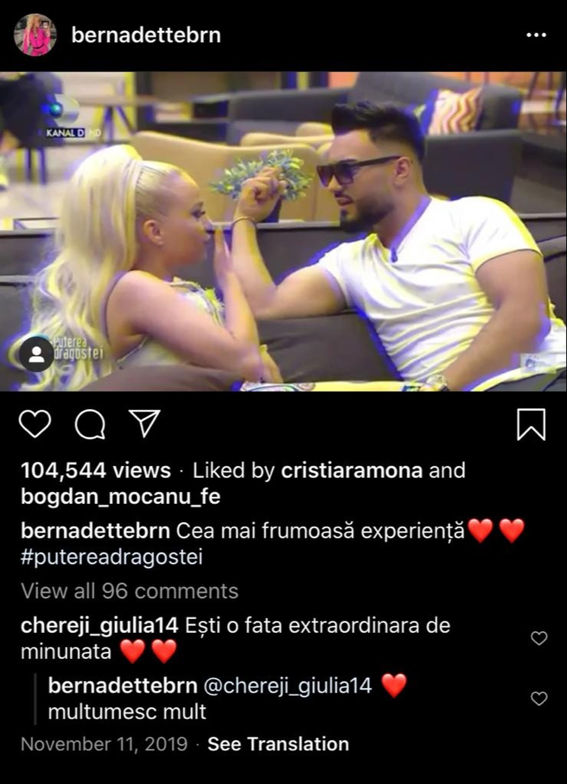 În imaginile pe care le-a păstrat pe rețelele de socializare și pe care le-a postat chiar și după ce s-a terminat emisiunea, Berna este extrem de apropiată de Jador.