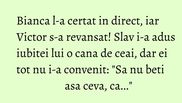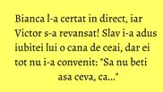 Bianca l-a certat in direct, iar Victor s-a revansat! Slav i-a adus iubitei lui o cana de ceai, dar ei tot nu i-a convenit: "Sa nu beti asa ceva, ca..."