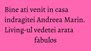 Andreea Marin si-a invitat prietenii virtuali in casa. Andreea Marin locuieste intr-o casa cocheta pe care a decorat-o pana in cele mai mici detalii in ton cu personalitatea ei.