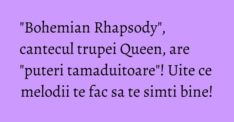 Cantecul "Bohemian Rhapsody" al trupei Queen are "puteri tamaduitoare", intrucat are capacitatea de a le ajuta pe acele persoane care sunt bolnave sau se simt deprimate, afirma autorii unui sondaj realizat recent in Marea Britanie.