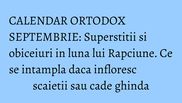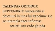 Denumirea populară a lui Septembrie este Răpciune sau Viniţel, adică luna vinului, căci începe culesul şi stoarcerea strugurilor pentru vin. Se spune că dacă tună în Septembrie, în luna lui Faur, adică în Februarie, va fi zăpadă multă şi anul va fi manos. Altă vorbă din popor spune că, dacă în această lună vor înflori scaieţii, asta înseamnă că va fi o toamnă lungă şi frumoasă; dar ducerea timpurie a rândunelelor înseamnă că şi iarna se va aşterne iute.