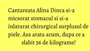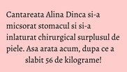 Alina Dinca a fost foarte incantata de rezultatul interventiei pe care a ales sa o faca, insa unul dintre dezavantajele acestei operatii este aspectul pielii.
