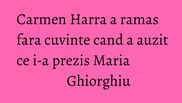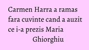 Carmen Harra a intrebat-o pe Maria Ghiorghiu daca se va mai casatori: ”Vă felicit pentru mintea dvs. extraordinară şi pentru viziunile extrem de corecte pe care le faceţi. Sunteţi nemaipomenită. Poate-mi spuneţi şi mie dacă mă mai mărit! Aş vrea să vă întâlnesc, doamna Maria, mai stau două zile şi aş vrea să vă întâlnesc!”