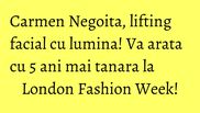 Am revenit la Noblezza, de aceasta data pentru o sedinta de fotoregenerare dupa care ma simt de parca as fi sters cinci ani de pe chip ”, declara Carmen Negoita.
