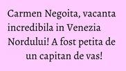 „Mi s-a parut tare haios momentul. Mi-a spus ca sunt deosebita si ca ii place modul in care ma imbrac si ca ar vrea sa imi faca cunostinta cu fiul lui. Eu am zambit politicos si i-am spus ca ii multumesc pentru intentie, dar ca nu sunt interesata momentan de a avea o relatie. El a continuat sa insiste aratandu-mi, in timp ce navigam pe apa, cateva case frumoase din jur, care erau de vanzare, si unde ne-am putea muta impreuna. Era un domn foarte haios, dar politicos in acelasi timp. La finalul cursei cu vasul ne-am luat ramas bun si mi-a spus ca abia asteapta sa revenim in Bruges, unde vom fi tot timpul bineveniti”, ne-a povestit Carmen Negoita.