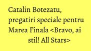 Ii iubesc si ii respect pe toti cei implicati in acest proiect unic in Romania. Alaturi de colegii mei m-am simtit extraordinar si le multumesc tuturor pentru implicarea si sustinerea in acest minunat proiect <Bravo, ai stil! All Stars>”, marturiseste Catalin Botezatu.