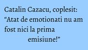 “Noi ne uitam la voi, de fapt ne holbam, si ne dam seama ca aveti o soarta grea voi, femeile frumoase!”, marturiseste Victor. In asentimentul colegului sau, Catalin Cazacu, coplesit de frumusetea celor doua invitate, declara: “Cred ca nu se vede, dar atat de emotionati nu am fost nici la prima emisiune”.