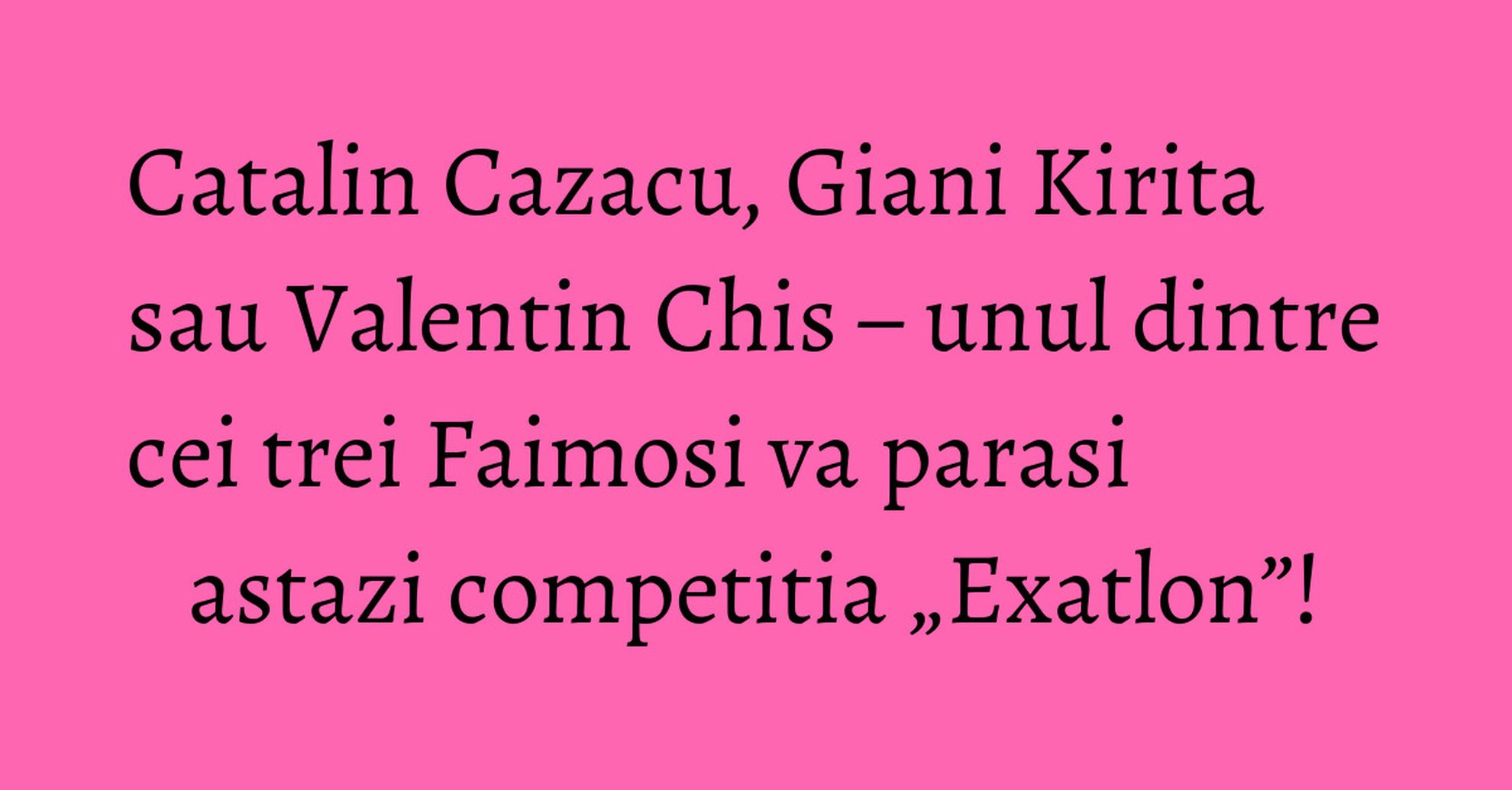 In aceasta seara, telespectatorii vor afla cine dintre cei trei nominalizati din echipa Faimosilor va parasi Republica Dominicana, in urma voturilor exprimate de telespectatori. Se anunta, fara indoiala, una dintre cele mai intense editii „Exatlon”, mai ales ca expusi la eliminare sunt componenti ai nucleului dur al Faimosilor.
