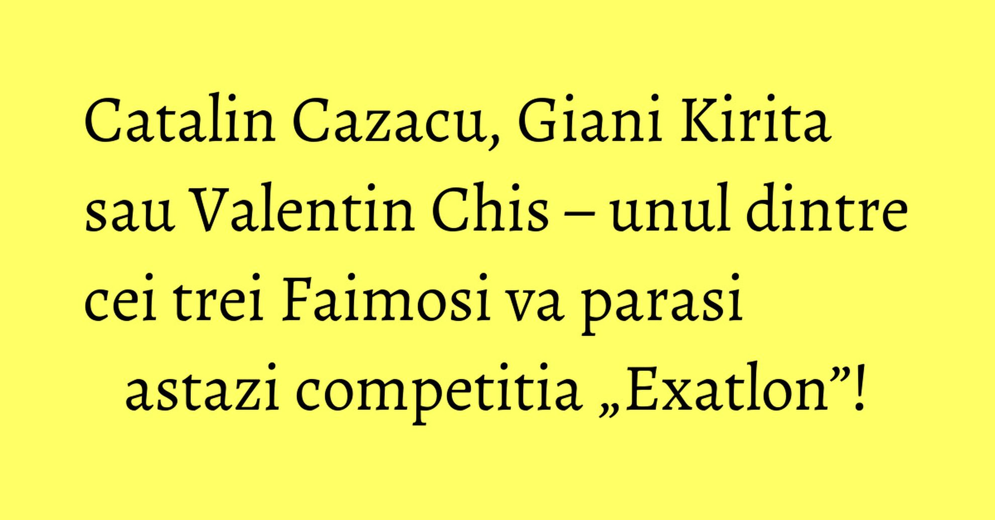 Spectacol dramatic, aseara, la „Exatlon”, intr-o editie in care lupta intre Faimosi si Razboinici a fost extrem de stransa. Invingatorii, cei care si-au castigat protectia ca echipa, au fost Razboinicii, in urma unei stafete de infarct. Punctul victorios a fost adus de Ionut si Roxana, in proba de stafeta mixta desfasurata impotriva reprezentantilor Faimosilor, Vladimir si Larisa. In timp ce Ionut isi striga victoria, imbratisat de coechipieri, Vladimir se prabusea coplesit de momentul infrangerii.